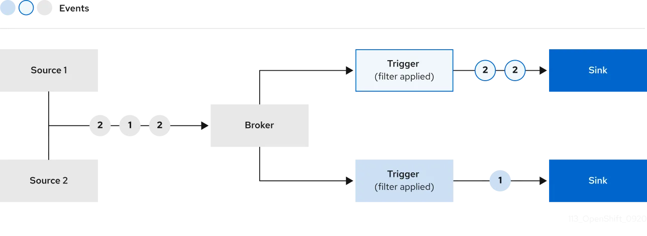 イベントブローカーからのイベントは、Triggerによって処理され、指定した配信先に送付されます。抽出するイベントにはフィルターを設定でき、配信先を調整することが可能です。アノテーションにより依存関係を設定して、Triggerを動作させる条件を指定することも可能です。配信が失敗した場合、配信失敗時の送信先、リトライまでの時間、リトライポリシーなどの細かな設定が可能です。 |