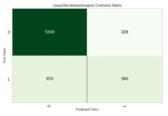 この関数は、モデルライブラリー内のすべてのモデルを学習し、メトリック評価のための層化交差検証を使用してそれらをスコアリングします。 出力は、学習時間とともに、精度、AUC、再現率、適合率、F1、Kappa、およびMCCを出力します。ここでは、LDAが最も高い精度を出したので、変数best_modelにはLDAのモデルオブジェクトが代入されます。