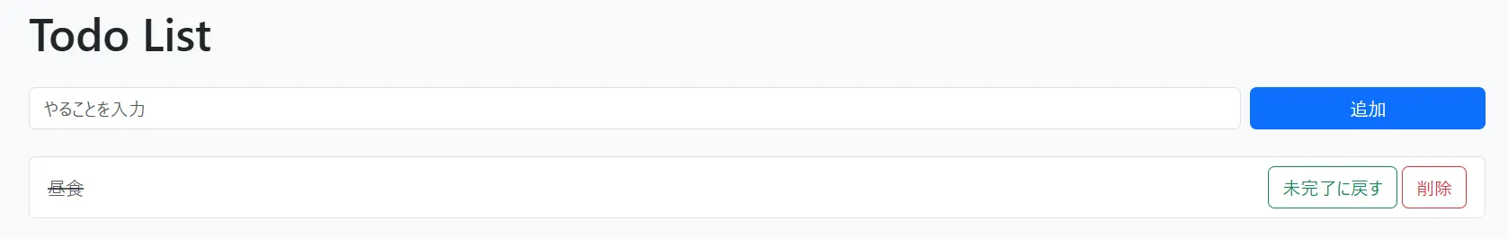「未完了に戻す」「削除」も正常に動作します。特にエラーは起きていなさそうです。AIに感謝です。
